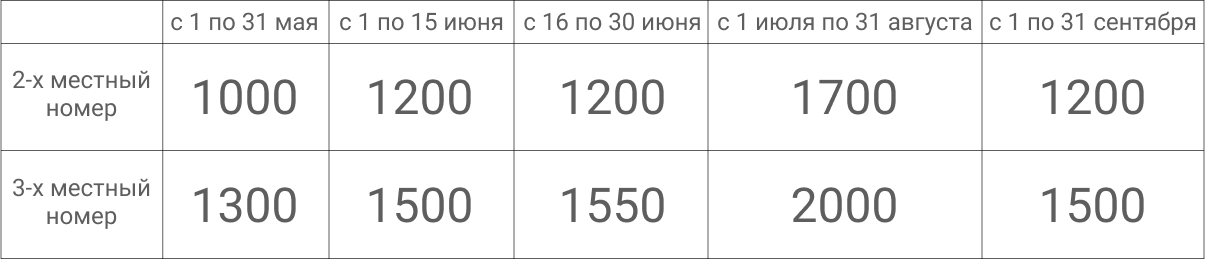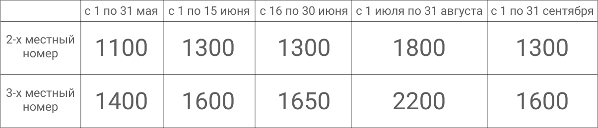 Так же у нас есть двухкомнатные номера на 5-6 человек и номер с кухней